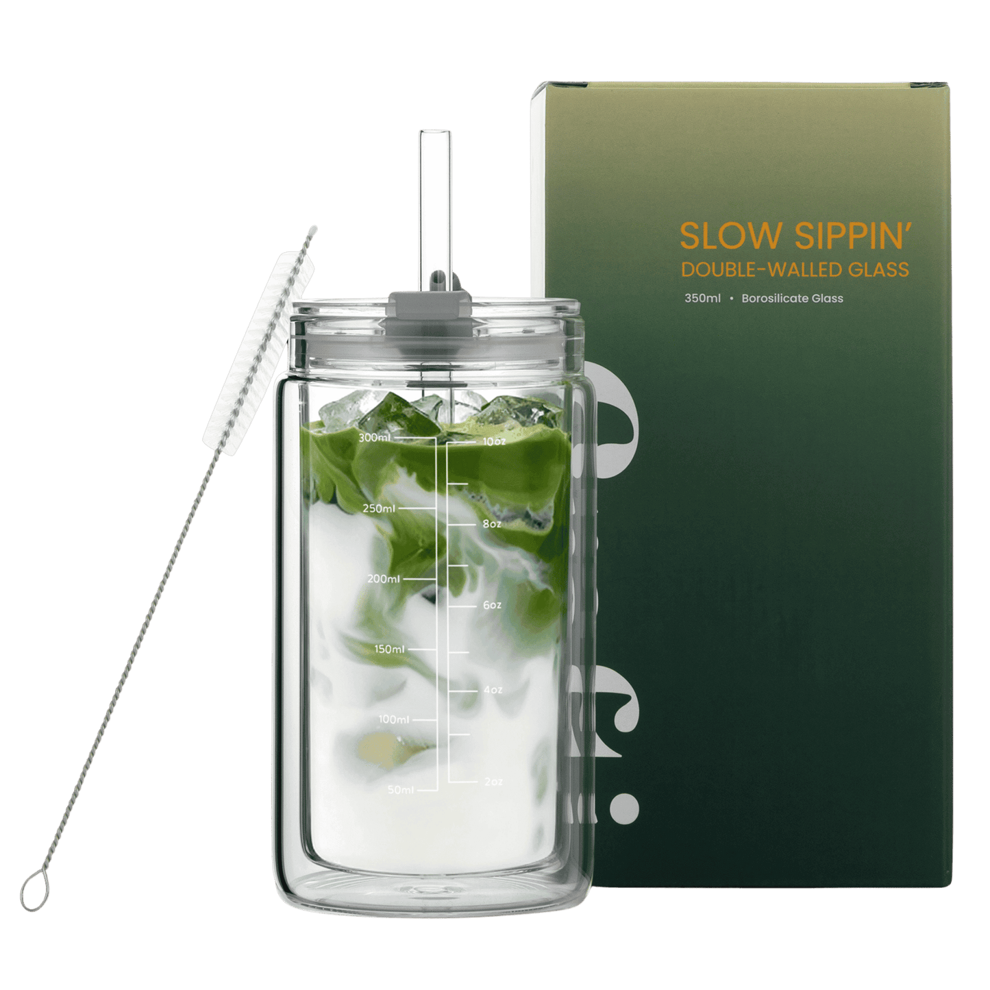 Elevate your Matcha experience on the go with our Slow Sippin' Double-Walled Glass Tumbler - perfect for the office or in your car.